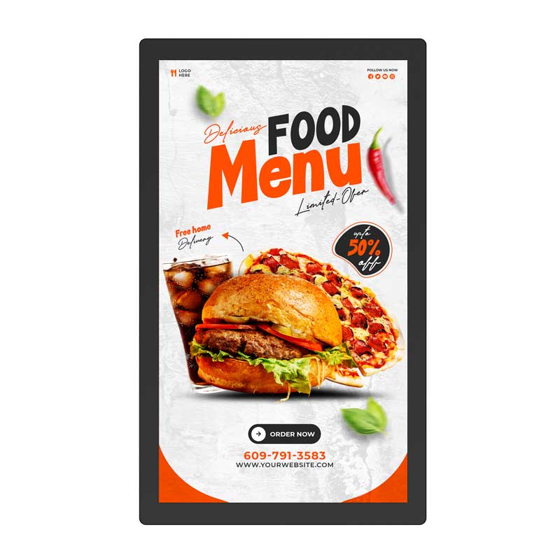 Geephon’s Outdoor Drive-Thru Display is designed for quick-service restaurants, offering excellent visibility and durability. With bright Mini LED backlighting up to 6500 cd/m², it displays clear content even in bright sunlight. Its IP66 rating provides protection, and it effectively manages heat, making it ideal for drive-thru lanes.