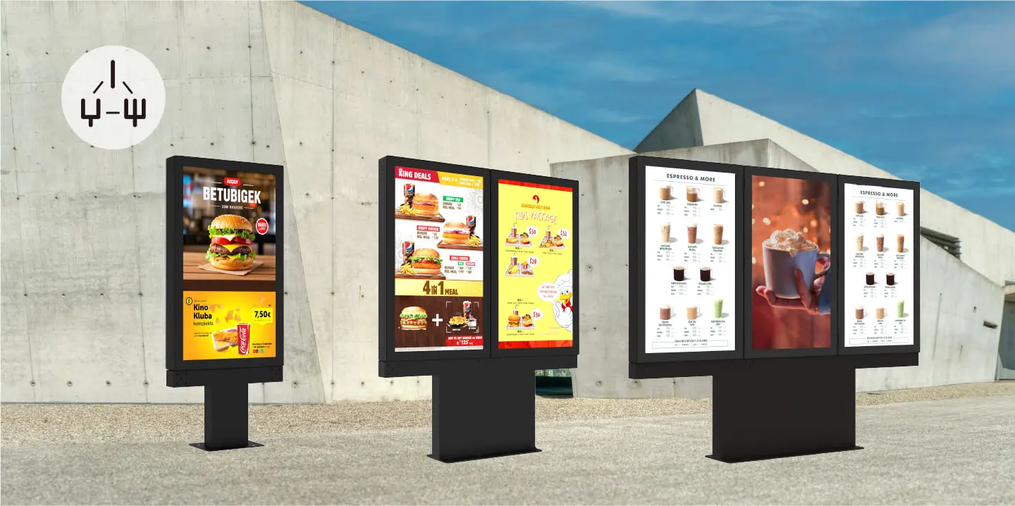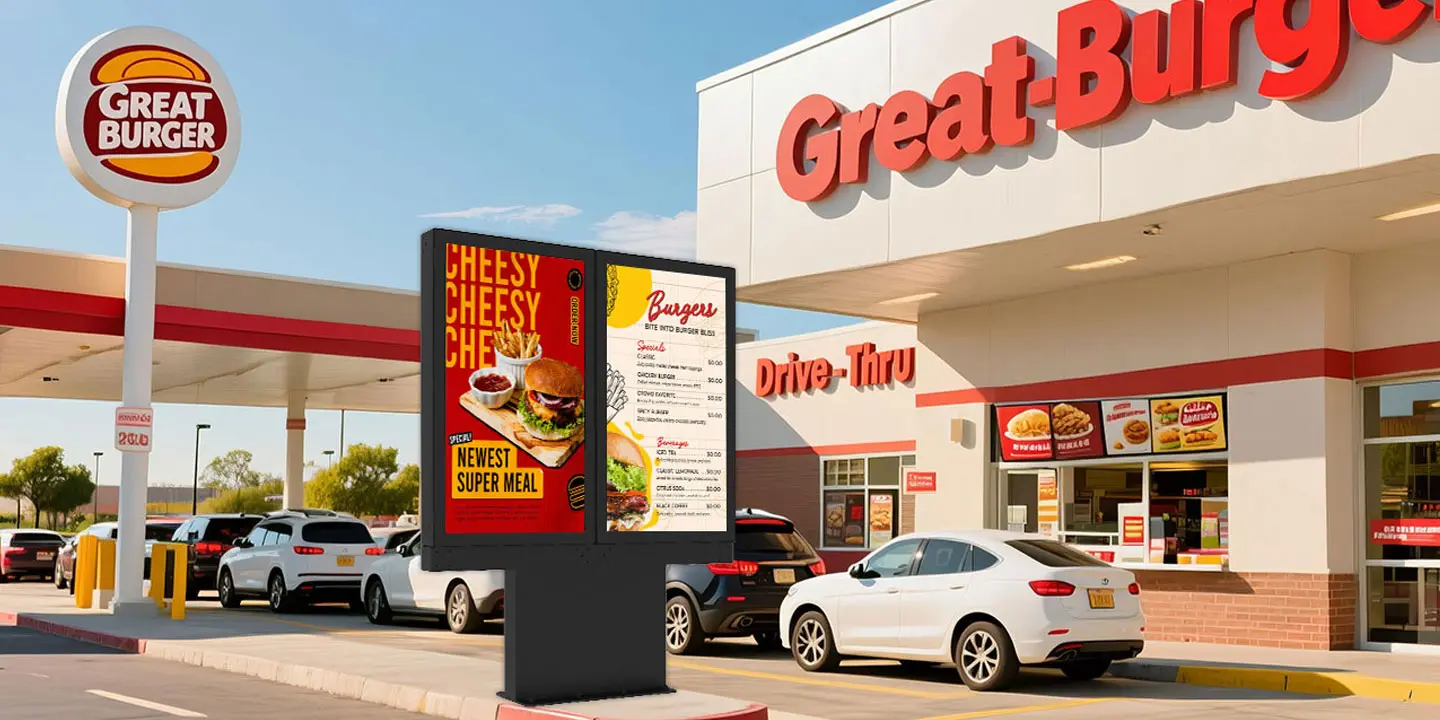 Geephon’s Outdoor Drive-Thru Display is designed for quick-service restaurants, offering excellent visibility and durability. With bright Mini LED backlighting up to 6500 cd/m², it displays clear content even in bright sunlight. Its IP66 rating provides protection, and it effectively manages heat, making it ideal for drive-thru lanes.