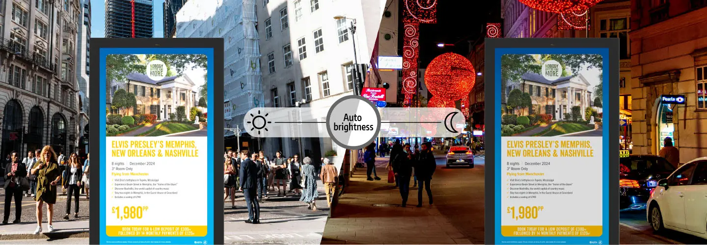 The outdoor enclosure features an ambient light sensor that automatically adjusts the screen brightness. This feature ensures clear visibility, increases brightness in bright environments, and reduces brightness in darkness. This innovative feature helps users save energy and reduce unnecessary costs without compromising performance.
